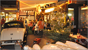 Bereits auf dem Hof wurde unübersehbare Weihnachtsstimmung verbreitet. Das Opel-Museum Herne hatte einen "Weihnachtstruck" (Opel Blitz, Bj. 1959) mit voller Beleuchtung aufgestellt.