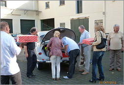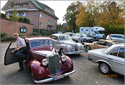 Beim Kaffee am Samstagmorgen waren mehrere Oldtimerfreunde willens und bereit, an der Ausfahrt teilzunehmen, obwohl parallel dazu auch andere Oldtimerevents im Ruhrgebiet anstanden. Wir entschlossen uns daher, am 21.10.2012 um 13.00 Uhr eine Ausfahrt zu veranstalten, wobei sich Wolfgang Bruch daran erinnerte, dass Herr Bodo Möhrke bei einem Besuch der Oldtimerhalle signalisiert hatte, dass das Schloss Bladenhorst jederzeit zu einem Aufenthalt zur Verfügung stehe. Auch insoweit ist unverzüglich Kontakt aufgenommen worden mit Herrn Möhrke (vgl. Bericht in der Zeitschrift Oldtimermarkt 10/2012, S. 154, 50 Jahre MGB). Herr Möhrke signalisierte uns ebenfalls, dass wir kommen könnten, so dass der Ausfahrt letztlich nichts mehr im Wege stand.