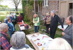 Das Wetter war in der Tat super, so dass wir über schöne Landstraßen Richtung Haltern-Hullern bis nach Seppenrade gefahren sind. Dort haben wir auf dem Parkplatz "Rosengarten" eine kurze Rast eingelegt. Elke Seitz hatte einen leckeren Schokoladenkuchen mitgebracht, der dort großen Anklang fand.