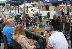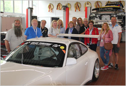 Nach einem längeren Aufenthalt im Fahrerlager haben wir uns dann noch in das alte Fahrerlager begeben. Dort waren Fahrzeuge ausgestellt, die man ansonsten nur bei der Mille Miglia in Italien sieht. Die Stimmung war hervorragend. Der ehemalige Rennsport war überall zugegen. Wir hatten auch das Vergnügen, in die Boxengasse gehen zu können und quasi unmittelbar an der Rennstrecke zu stehen. Nach einer Besichtigung der Werkstatt der Firma Teichmann Racing - dort werden Cup-Porsche umgebaut - haben wir dann den Tag bei einem gemeinsamen Essen in unserem Hotel auf der Terrasse ausklingen lassen.