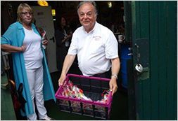 Es handelte sich hierbei um ein bislang nicht veröffentlichtes Bild des Herner Pinguin, versehen mit einem Autogramm des einzig noch lebenden Mitarbeiters der Firma MEV Hans Hansmann. Alle weiteren Hallenbesucher, insbesondere diejenigen, die zu unseren ständigen Besuchern gehören, erhielten ebenfalls ein passendes Jubiläumsgeschenk: Es handelte sich hierbei um eine bislang nicht verausgabte Figur des Jobst von Strünkede, diese konnte bei Auflösung eines Herner Geschäftes gefunden werden, und zwar in ausreichender Stückzahl.