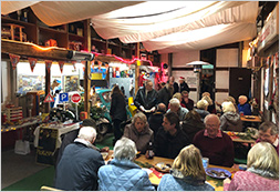 Sodann ergab sich eine nette Abendveranstaltung, begleitet von vielen guten Gesprächen, wobei natürlich das abgeschlossene Oldtimerjahr Revue passiert wurde. Viele gute Ideen für das neue Jahr stehen an, so dass wir uns überhaupt keine Sorgen machen, dass es nicht in der bisherigen Form weitergeht. Hilmar Born, Bernd Slawik und Wolfgang Bruch hatten eine kleine Wiking Ausstellung vorbereitet, die großen Anklang fand. Es waren ausschließlich Autos aus den fünfziger und sechziger Jahren ausgestellt, die sich im Originalzustand befanden. Auch eine Originalkasperbühne aus den sechziger Jahren bestückt mit den entsprechenden Figuren fand viele Bewunderer. Die Theke wurde diesmal gemanagt von Gaby Metzler, Olga Bruch und Tina Graeffly, denen wie immer herzlich gedankt sei. Wir wissen, dass ohne Mitarbeit von vielen Personen eine solche Veranstaltung nicht durchzuführen ist. Dies gilt auch für alle anderen helfenden Hände, insbesondere unserem guten Geist der Halle Erich.
