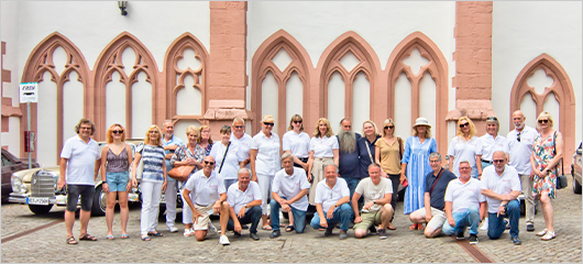 Die diesjährige Ausfahrt führte uns in der Zeit vom 22. bis 24.07.2022 in das schöne Rheingau. Bei herrlichem Sonnenschein setzten wir uns in Herne mit 13 Fahrzeugen in Richtung Rüdesheim in Bewegung. Erster Stopp fand im Ort Unkel statt. Von dort aus begaben wir uns auf das Plateau der Erpeler Ley, hier hatten wir eine herrliche Sicht in das Rheintal. Gegen Nachmittag erreichten wir unser Hotel in Eltville. Ein erster Rundgang im Ort zeigte uns bereits, wie schön die Gegend dort ist. Für den folgenden Samstag hatten wir ein strammes Programm vorbereitet. Nach dem Frühstück fuhren wir geschlossen zum Kloster Eberbach.