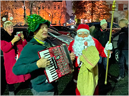 Drei liebe Kinder wurden vom Nikolaus beschenkt und es zeigte sich, dass diese richtigen Spaß an der Vorstellung hatten, so überbrachte Frieda dem Nikolaus zwei selbst gemalte Bilder. Nachdem Hilmar Born auf der Melodika aus den 50er Jahren noch das Lied „Stille Nacht“ gespielt hatte, zog der Nikolaus aus der Halle aus und begab sich zu seinem nächsten Ziel.