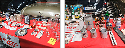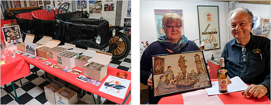 Begleitet wurde der Vortrag von einer umfangreichen Ausstellung alter Hülsmann Reklame, Bieretiketten, Bierdeckeln, Gläsern, Werbepräsenten etc. Der Höhepunkt der Veranstaltung bildete eine Verkostung eines Bieres, welches in der hiesigen Region gebraut wird in und in Original Hülsmanngläsern ausgeschenkt wurde. Es handelt sich dabei um das in einer kleinen Privatbrauerei in Bottrop hergestellte „Bottroper Bier“. Dieses hatten die Oldtimerfreunde extra in Bottrop besorgt, weil es durchaus einen Bezug zu Herne hat.