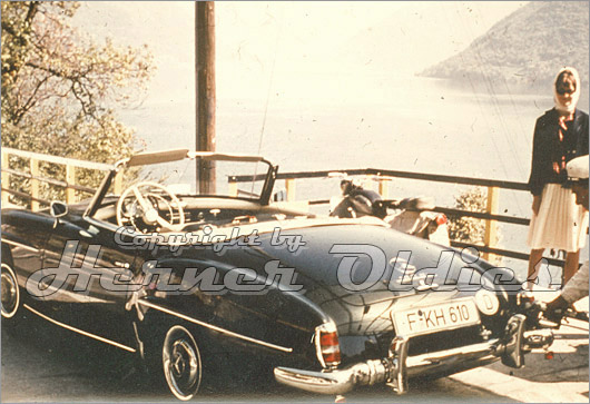 Wenn man sich dieses herrliche Foto eines Mercedes 190 SL Anfang der sechziger Jahre anschaut. Das Foto ist in Frankfurt aufgenommen worden. Das Fahrzeug in dunkelblau mit cremefarbener Innenausstattung wusste zum damaligen Zeitpunkt auch Frau Ernie Plager zu begeistern, die uns dieses Foto freundlicherweise zur Verfügung stellte.