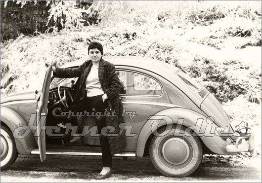 Einen VW Käfer in Winterlandschaft zeigt dieses Foto aus dem Jahre 1966. Es handelt sich um einen Standardkäfer, wie er millionenfach auf deutschen Straßen zu sehen war.