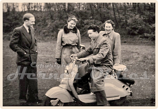 Vorführung der neuen Lambretta im Jahre 1958 auf einem Parkplatz am Herner Gysenberg.