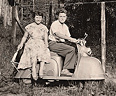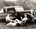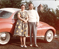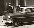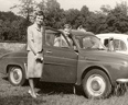 Startbereit für den Sommerausflug! Stolz präsentiert sich dieses Paar in den 50er Jahren kurz vor Fahrtantritt...