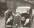 Ein Vorkriegsauto im täglichen Einsatz nach dem II. Weltkrieg. Es handelt sich um einen Opel P 4 in der Spezial-Variante...