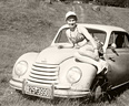 Stolz präsentiert diese junge Dame ihren Opel Rekord A Coupe im Jahre 1964...