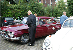 Trotz des eher mässigen Wetters am Samstag, dem 23. August waren noch 18 Fahrzeuge vor der Oldtimerhalle zur Fahrzeugsegnung erschienen. Vikar Severin von der Herz Jesu Gemeinde bat die kleine Versammlung zu einem kurzen Wortgottesdienst und erinnerte in seiner Ansprache daran, dass dieser alte Brauch durchaus nicht nur "von gestern" sei. Nach der Segnung der einzelnen Fahrzeuge, die alle einen Christophorus Aufkleber erhielten, ergab sich ein geselliges Beisammensein, wobei Vikar Severin mit grossem Interesse auf jeden einzelnen Teilnehmer inkl. seines Fahrzeuges zuging.