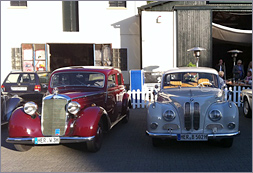 Oldtimerfahrzeuge vor unserer Halle ein. Hinzu kamen etliche Zuschauer, so