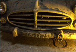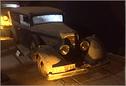 Dort erwartete uns zunächst Vorbesichtigung der Fahrzeuge. Diese waren in einer abgedunkelten Halle aufgestellt, wobei hierzu klassische Klaviermusik gespielt wurde. Die Art und Weise der Darstellung war bereits einzigartig, gleichwohl musste man feststellen, dass die allermeisten der Autos völlig verrottete Vehikel waren, teilweise nicht komplett. Sie standen nur mühsam auf behutsam aufgepumpten Rädern.