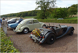 20 Oldtimerfahrzeuge mit insgesamt 43 Personen begaben sich am 16.09.2018 in das schöne Sauerland. Ziel unserer Sternfahrt war das Schloss Melschede in der Nähe des Sorpesees. Jeder der Teilnehmer konnte die Anfahrt so gestalten, wie er dies für richtig hielt. Allerdings sollten alle Teilnehmer um 12.00 Uhr sich am Schloss einfinden. Dies klappte super, so dass wir dort komplett um 12.00 Uhr eingetroffen waren. Wir hatten ein Picknick vorbereitet um Schlossgarten, welches angesichts der herrlichen Wetterverhältnisse und Temperaturen von allen Teilnehmern genutzt wurde: Alle hatten Tische und Stühle mitgebracht, ausreichend Verpflegung, einen Plattenspieler, Bocciaspiel etc.