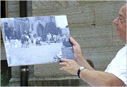 Wolfgang Bruch hielt sodann einen kleinen Vortrag über die Geschichte des Schlosses, insbesondere zu den Edgar Wallace Filmen „Der schwarze Abt“ und „Der Fälscher von London“, die Anfang der 60er Jahre (Außenaufnahmen) hier gedreht worden sind.