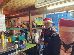 Es schlossen sich angenehme Benzingespräche an, wobei auch Teilnehmer aus dem gesamten Oldtimerumfeld erschienen waren, u.a. Jens Patros, Vorsitzender der Wittener Oldtimerfreunde, Burkhard Welzel, Vorsitzender des ACE Herne und viele andere mehr. Patrick Graeffly und Martin Metzler hatten wie immer die Kochecke bestens im Griff, so gab es leckere Erbsensuppe mit Einlage und eine richtig gute Gulaschsuppe. Leider war der Glühwein bereits um 20.00 Uhr ausverkauft, so dass wir uns mit den übrigen Getränken befassen mussten. Gegen 22.00 Uhr löste sich die Geselligkeit allmählich auf, weil doch am nächsten Tag noch viele ihrer beruflichen Tätigkeit nachgehen mussten.