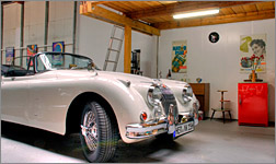 Zur Zeit befinden sich in der Halle ein Carman Ghia, ein Citroen DS, eine BMW Isetta, ein Porsche 911, ein Jaguar XK120, 2 BMW V8 Barockengel sowie ein Mercedes SL.