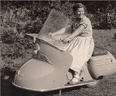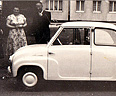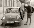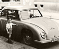 Diese Fotografie aus dem Jahre 1952 zeigt "das Auto mit den 2 Rädern", ein Maicomobil...
