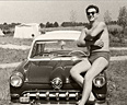Stolz präsentiert diese junge Dame ihren Opel Rekord A Coupe im Jahre 1964...