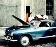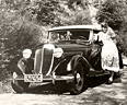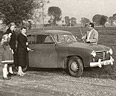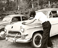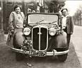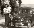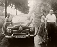 Startbereit für den Sommerausflug! Stolz präsentiert sich dieses Paar in den 50er Jahren kurz vor Fahrtantritt...