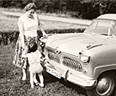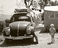 VW Käfer und VW T1 Samba werden durch Mutter und Tochter Ende der 50er Jahre stolz präsentiert...