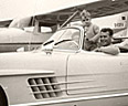 Mit sichtbarem Stolz präsentiert Fritz Teichmann 1960 einen Mercedes 300 SL Roadster auf dem Flugplatz Loemühle ...