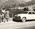 Das Bild zeigt einen Simca Aronde mit Weißwandreifen auf dem Weg in den Urlaub nach Rimini ...