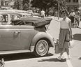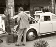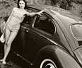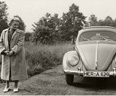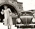 Die modebewusste Frau der 50er Jahre fuhr mit dem eigenen VW Käfer Cabrio in den Urlaub...