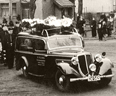 Ein Vorkriegsauto im täglichen Einsatz nach dem II. Weltkrieg. Es handelt sich um einen Opel P 4 in der Spezial-Variante...