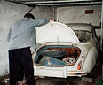 Des Deutschen liebstes Kind war der VW Käfer. Man achte hier auf den Hintergrund...