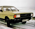 Das Bild zeigt einen Audi 80 LS, Baujahr 1977 in einem winterlichen Herne ...