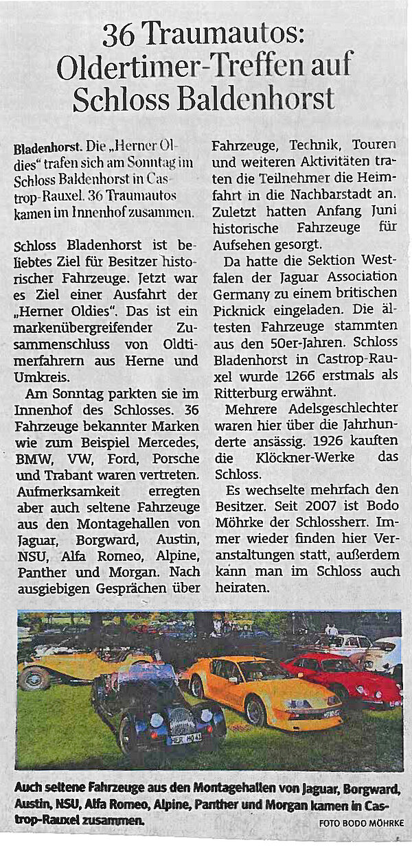 Am 25.08.2024 hatten wir uns aufgrund des schönen Wetters kurzfristig zu einem Picknick am Schloss Bladenhorst in Castrop-Rauxel getroffen. Der Schlossherr hatte uns bereits vor vielen Monaten eingeladen, mal wieder vorbeizuschauen. Dies haben wir gerne gemacht und unserem Ruf sind auch viele Oldtimerfreundinnen und Freunde gefolgt.