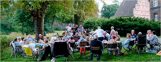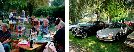 Insgesamt waren 45 Personen von den Herner Oldies vor Ort mit einer Fülle von schönen Fahrzeugen, ebenso hatten sich einige Gäste eingefunden, die von Herrn Möhrke zuvor informiert wurden. Der Innenhof sah fast aus wie eine englische „Gartengesellschaft“.